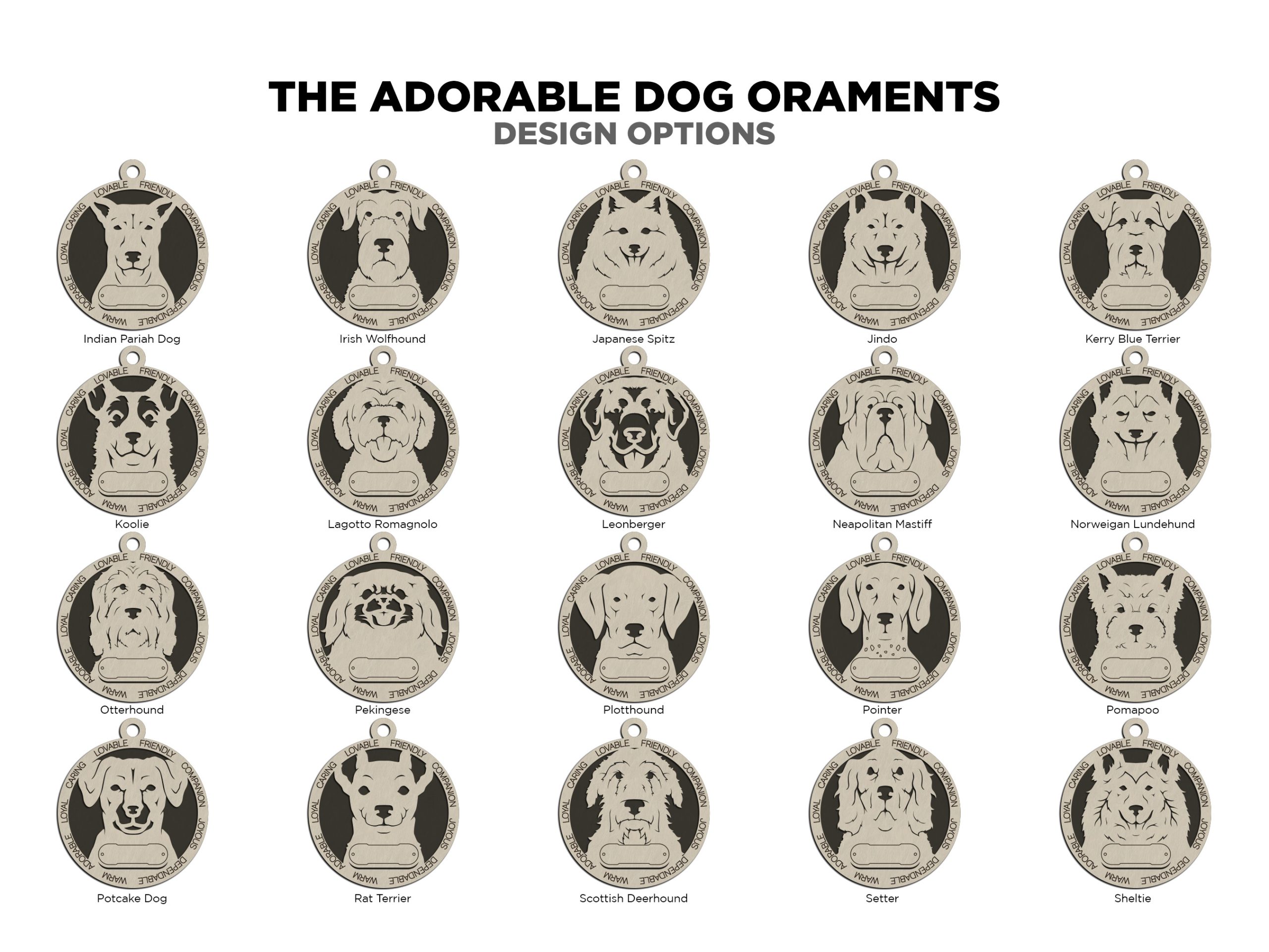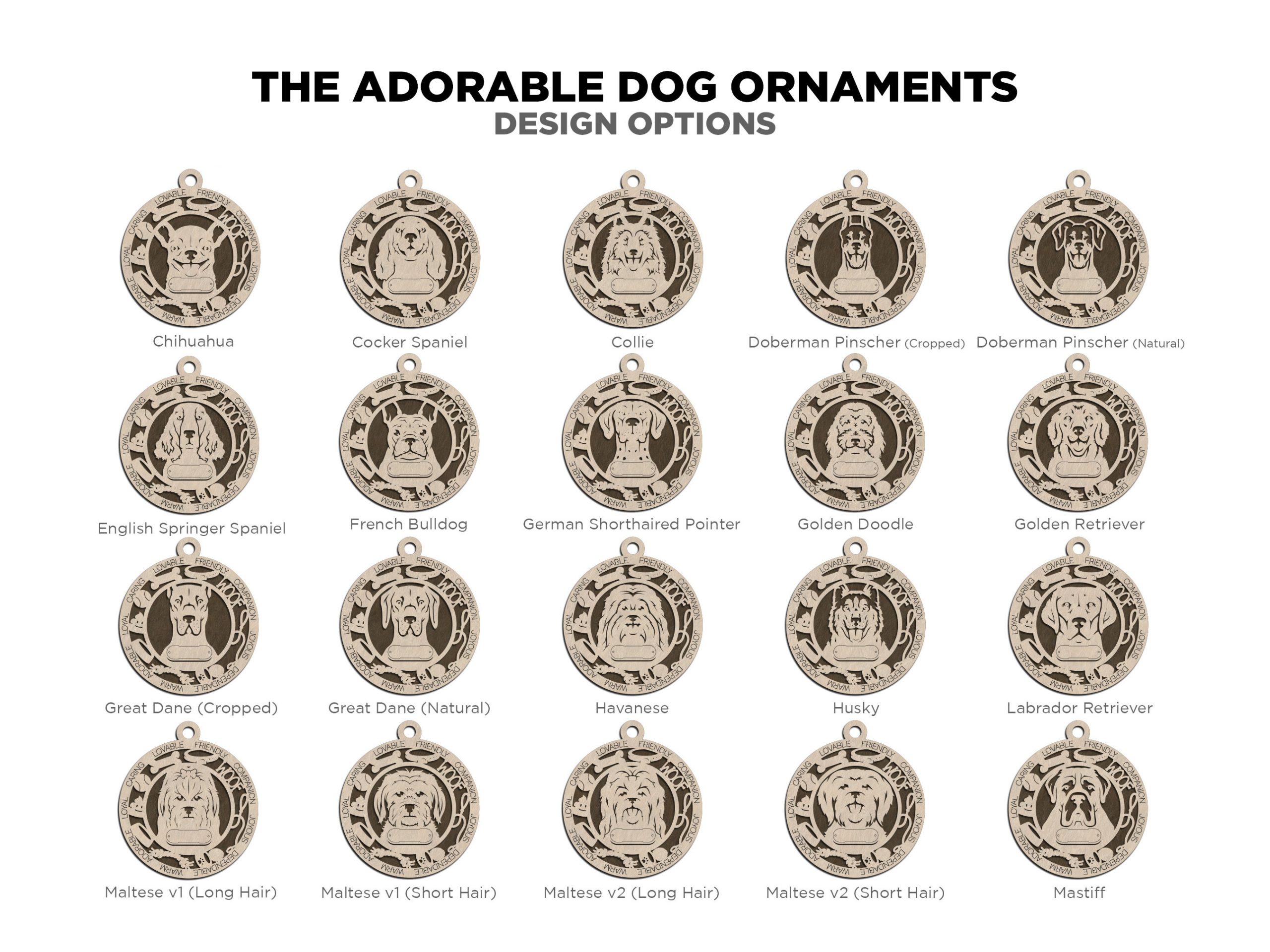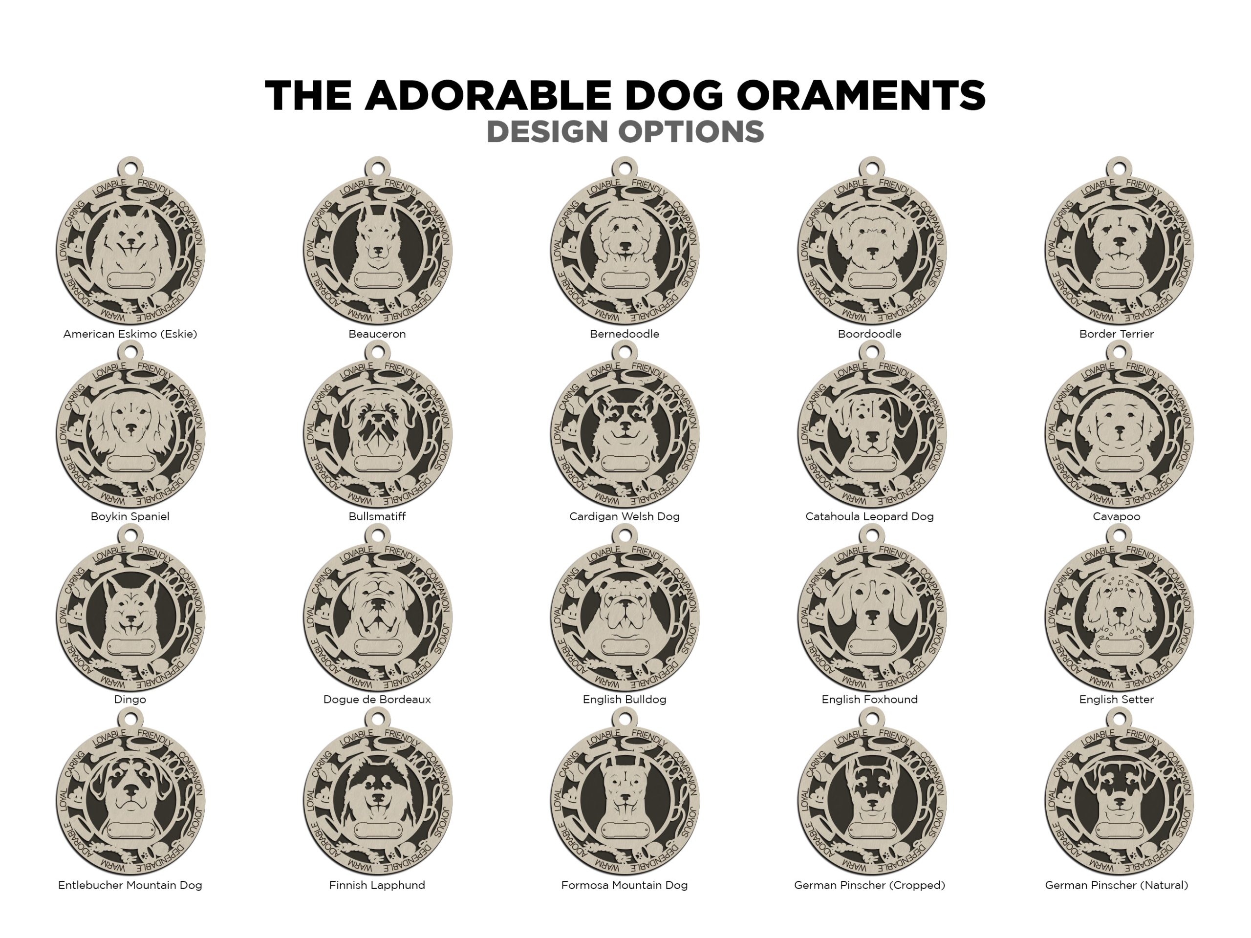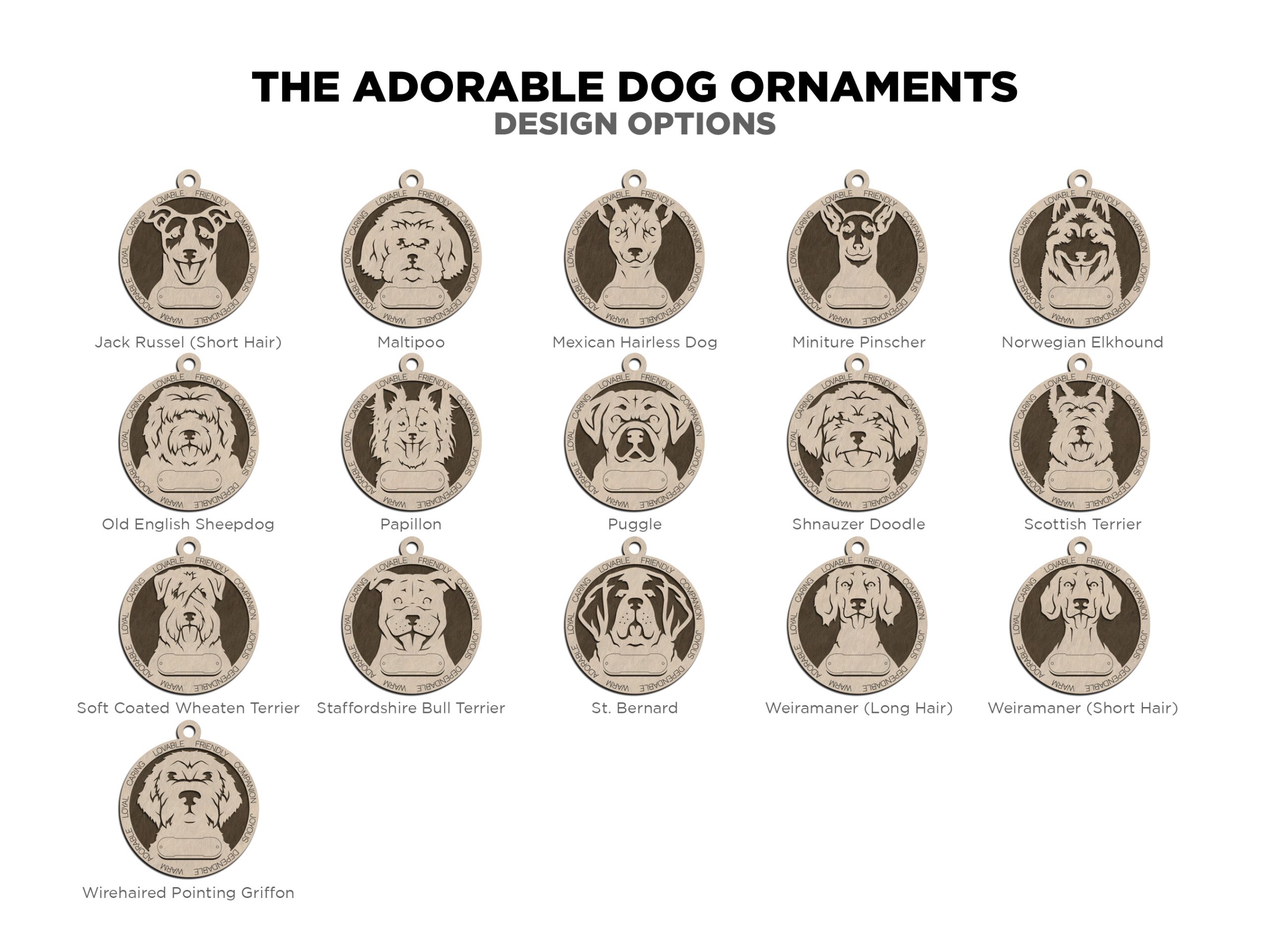 Celebrate your furry friend with our personalized laser-engraved Adorable Dog Ornaments, featuring a variety of breeds. Each ornament can be customized with your pet’s name, making it a perfect keepsake for the holidays.