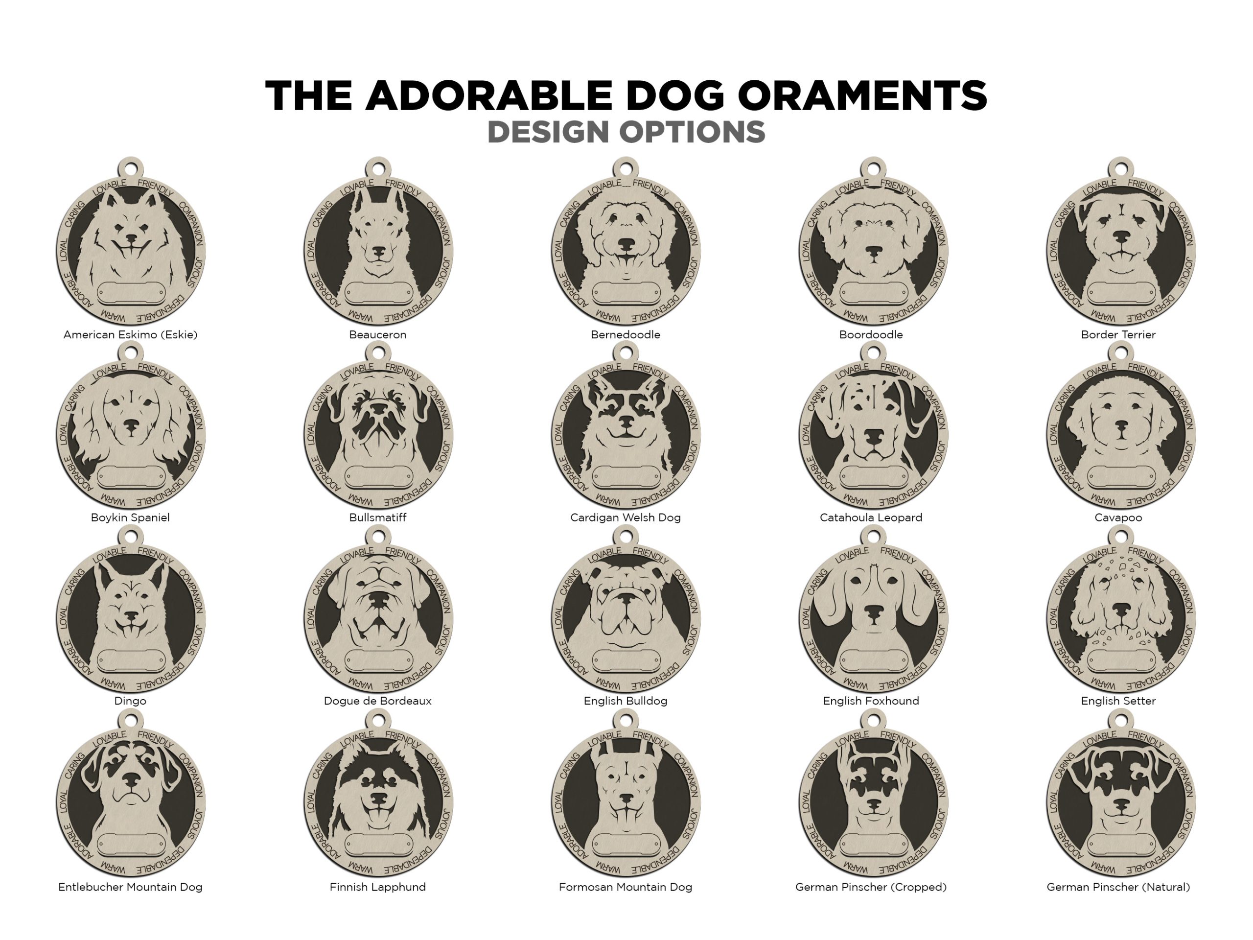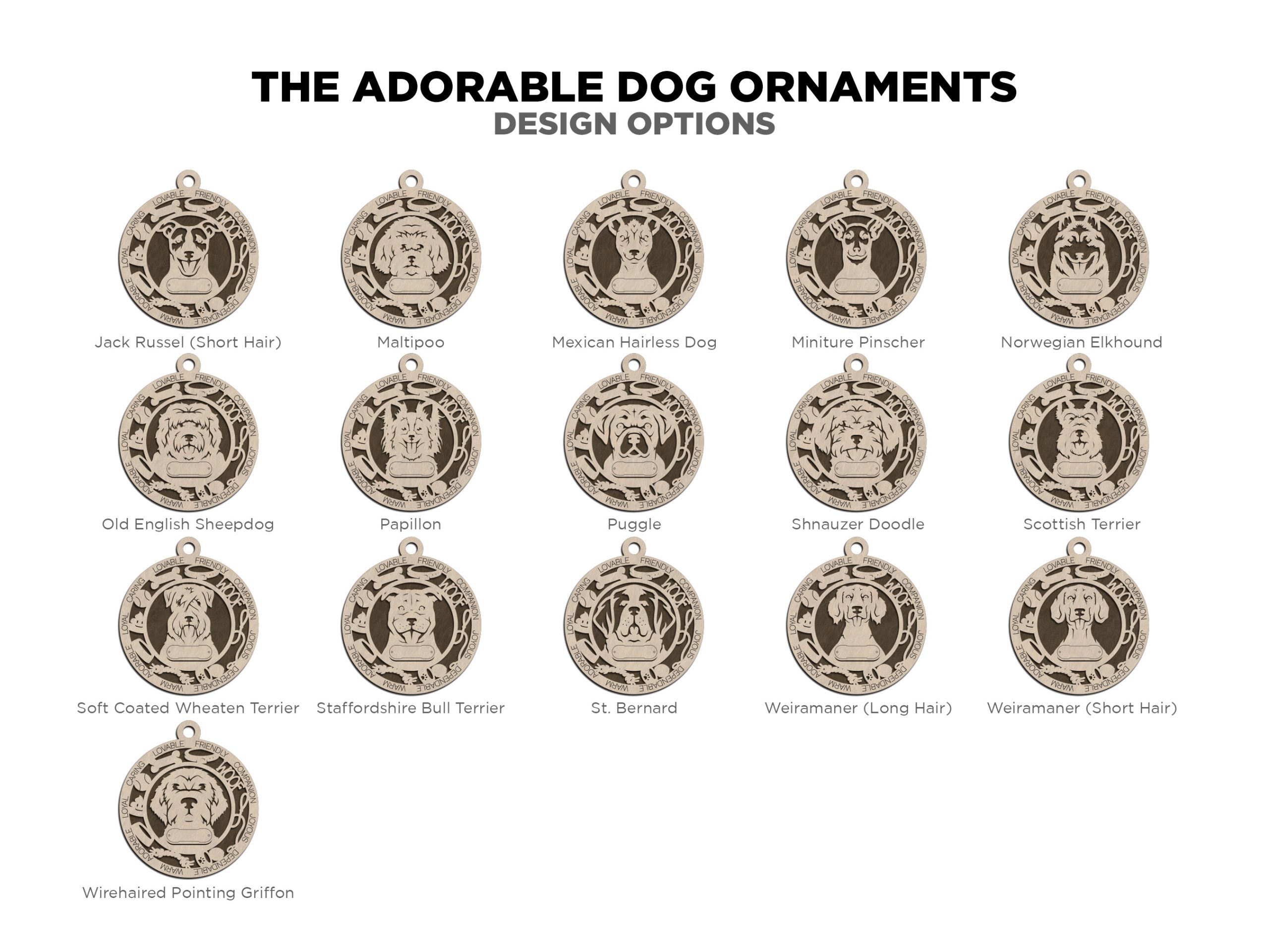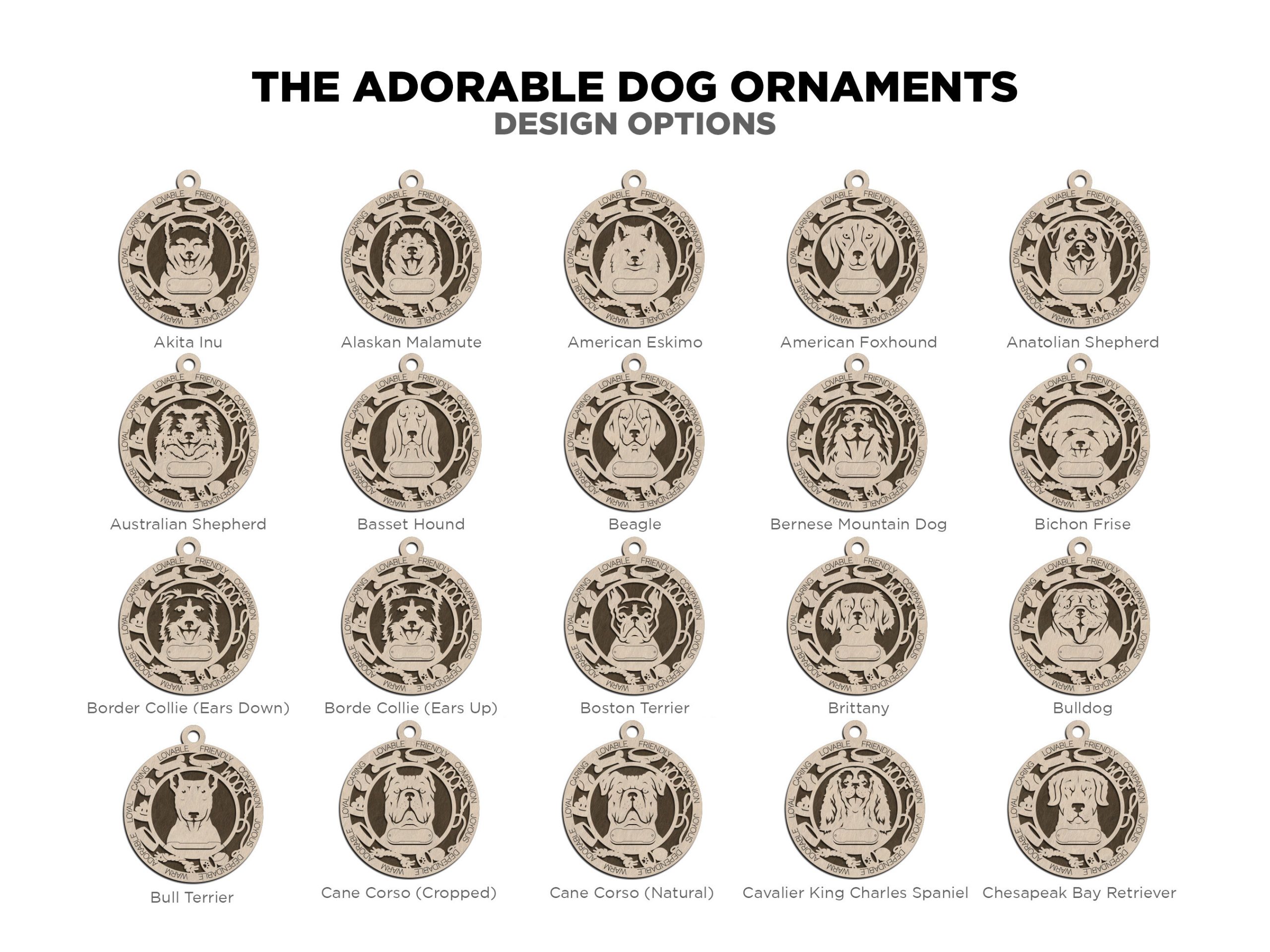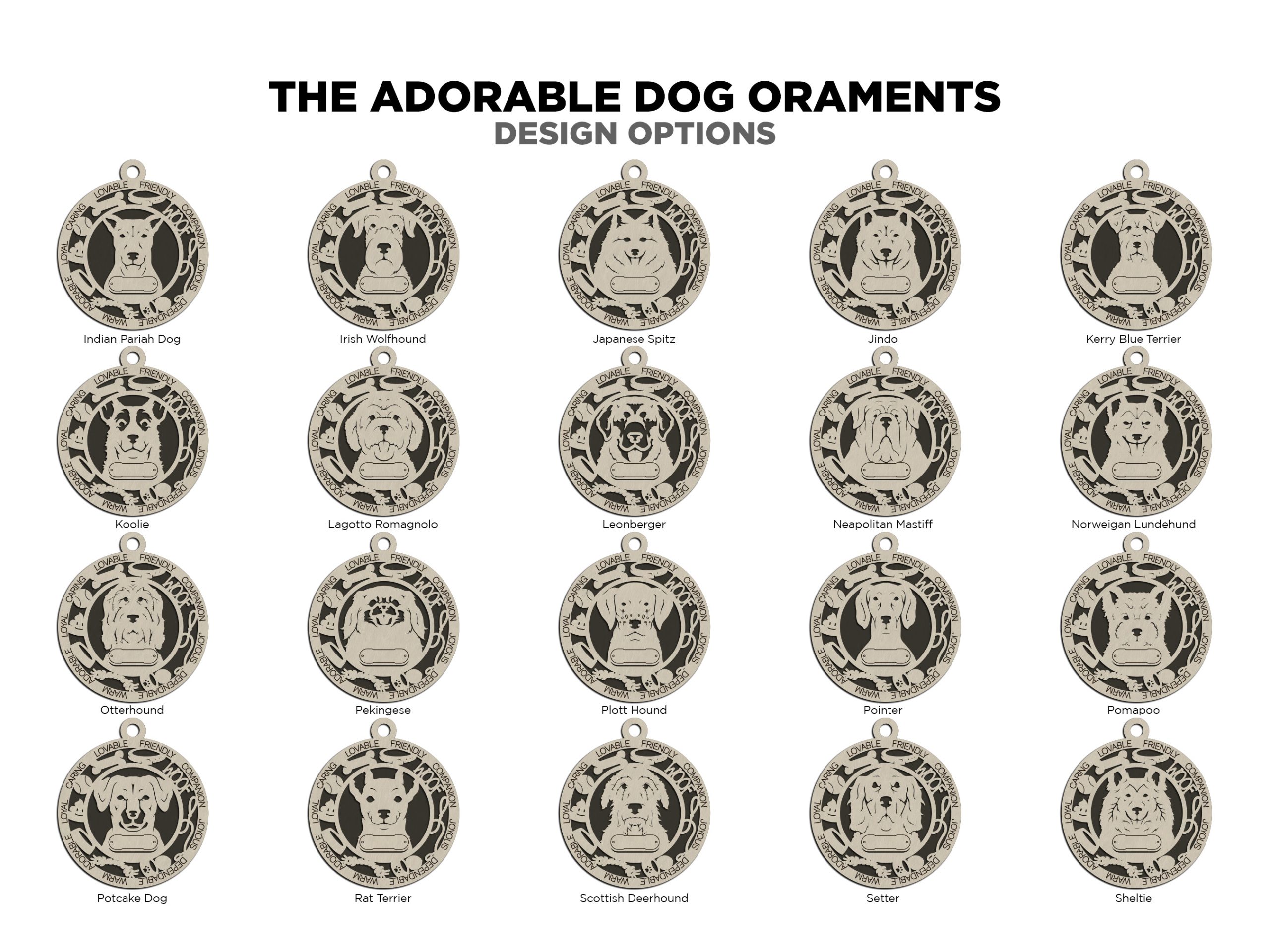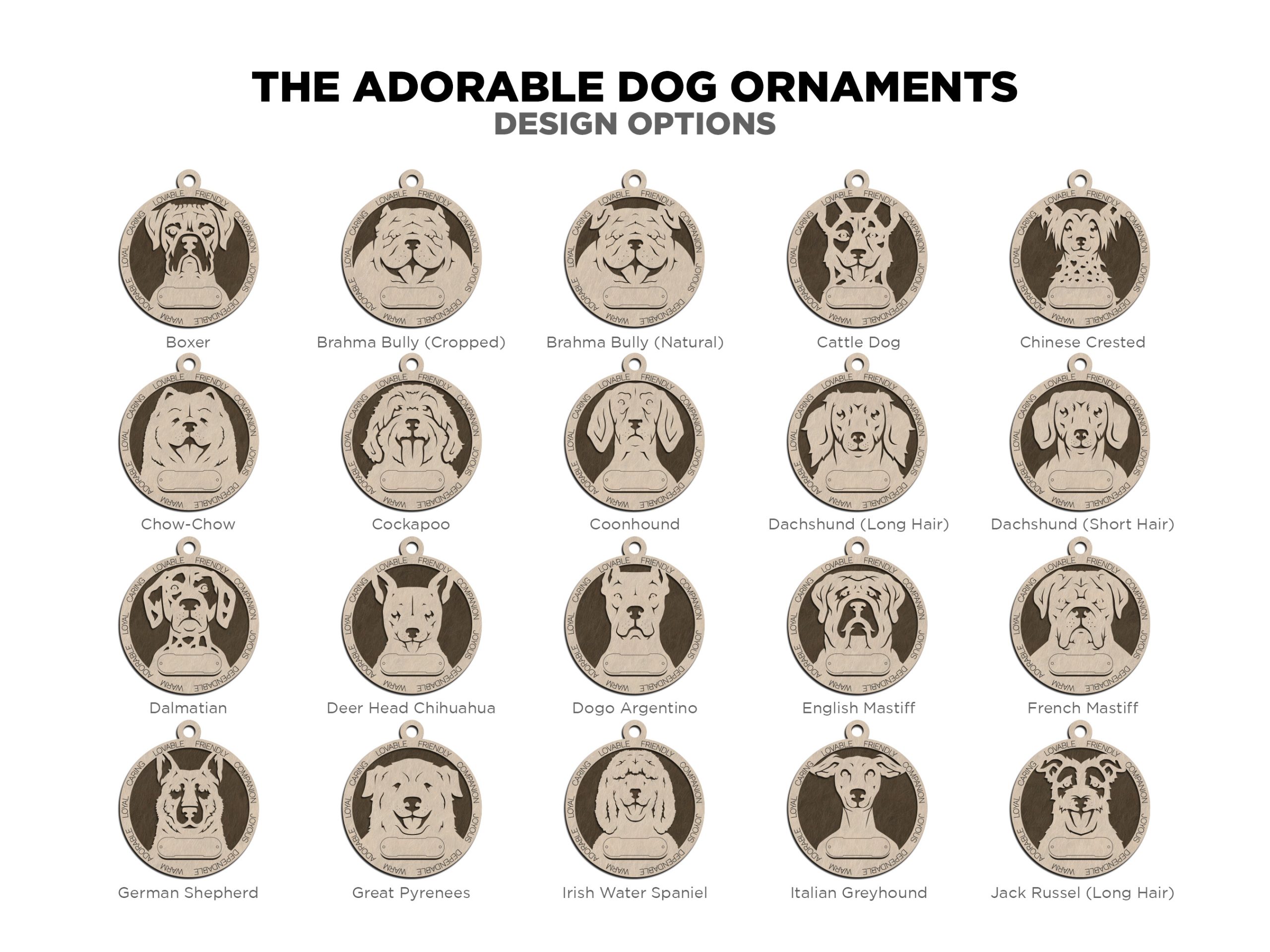 Celebrate your furry friend with our personalized laser-engraved Adorable Dog Ornaments, featuring a variety of breeds. Each ornament can be customized with your pet’s name, making it a perfect keepsake for the holidays.