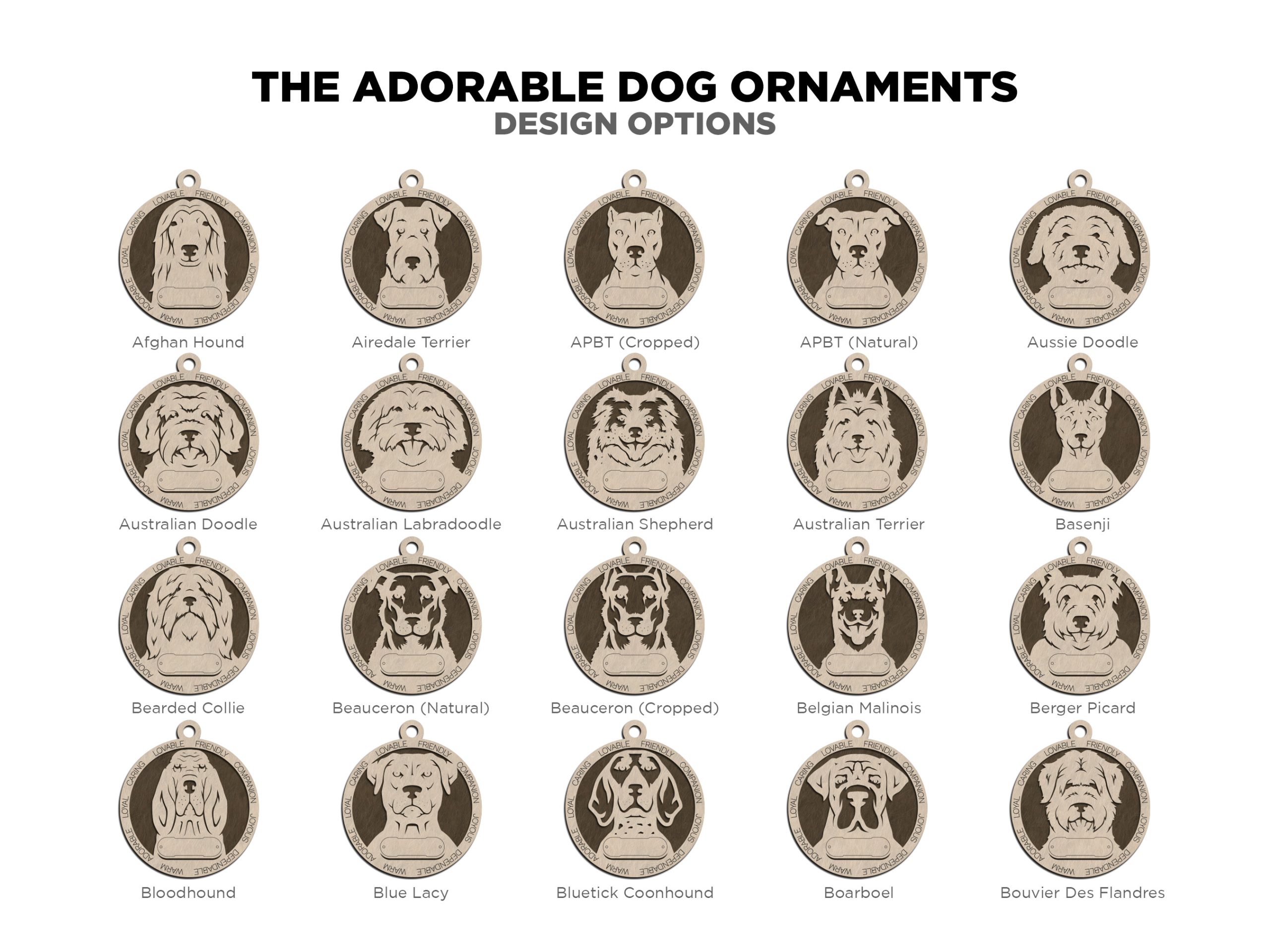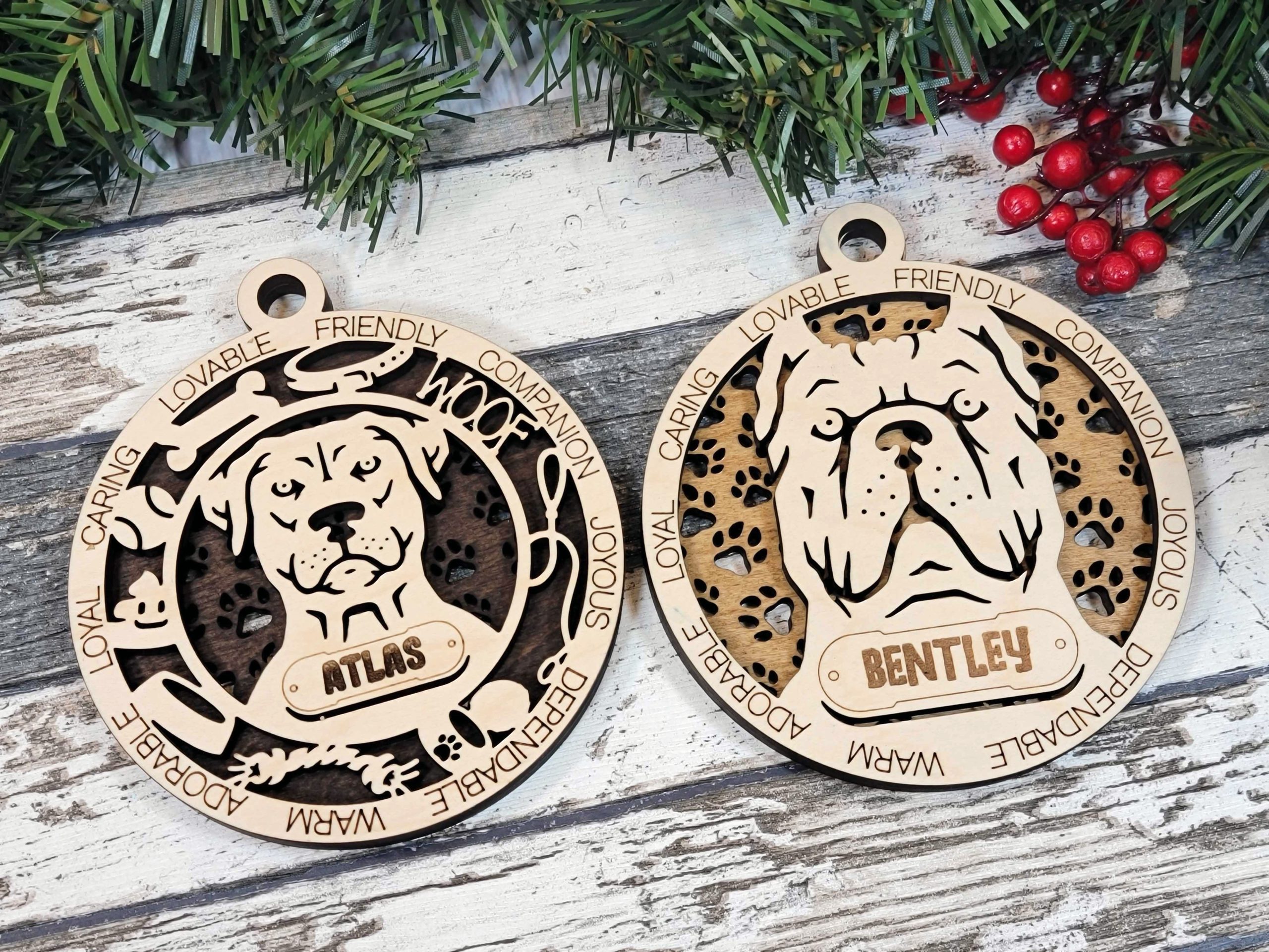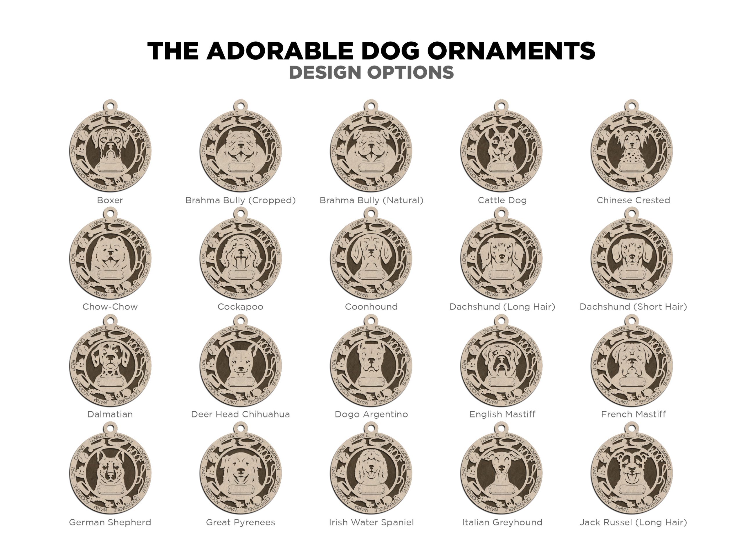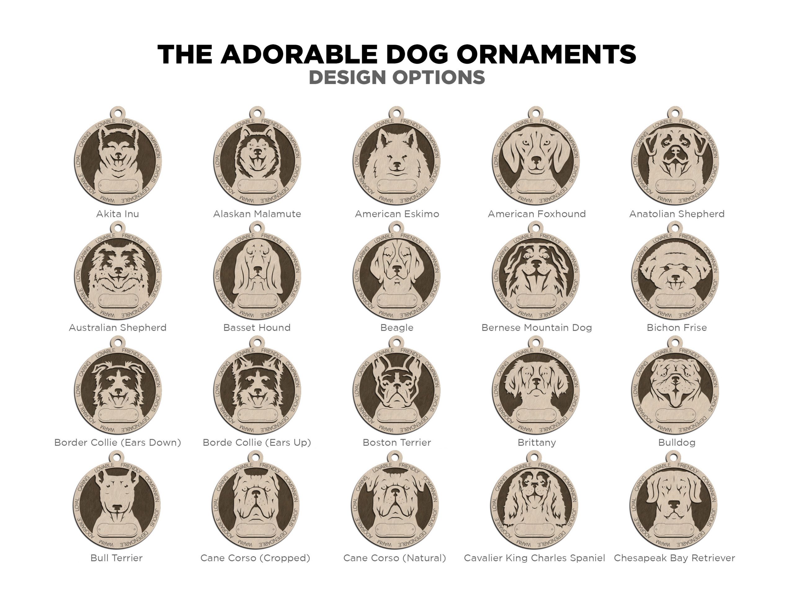Celebrate your furry friend with our personalized laser-engraved Adorable Dog Ornaments, featuring a variety of breeds. Each ornament can be customized with your pet’s name, making it a perfect keepsake for the holidays.