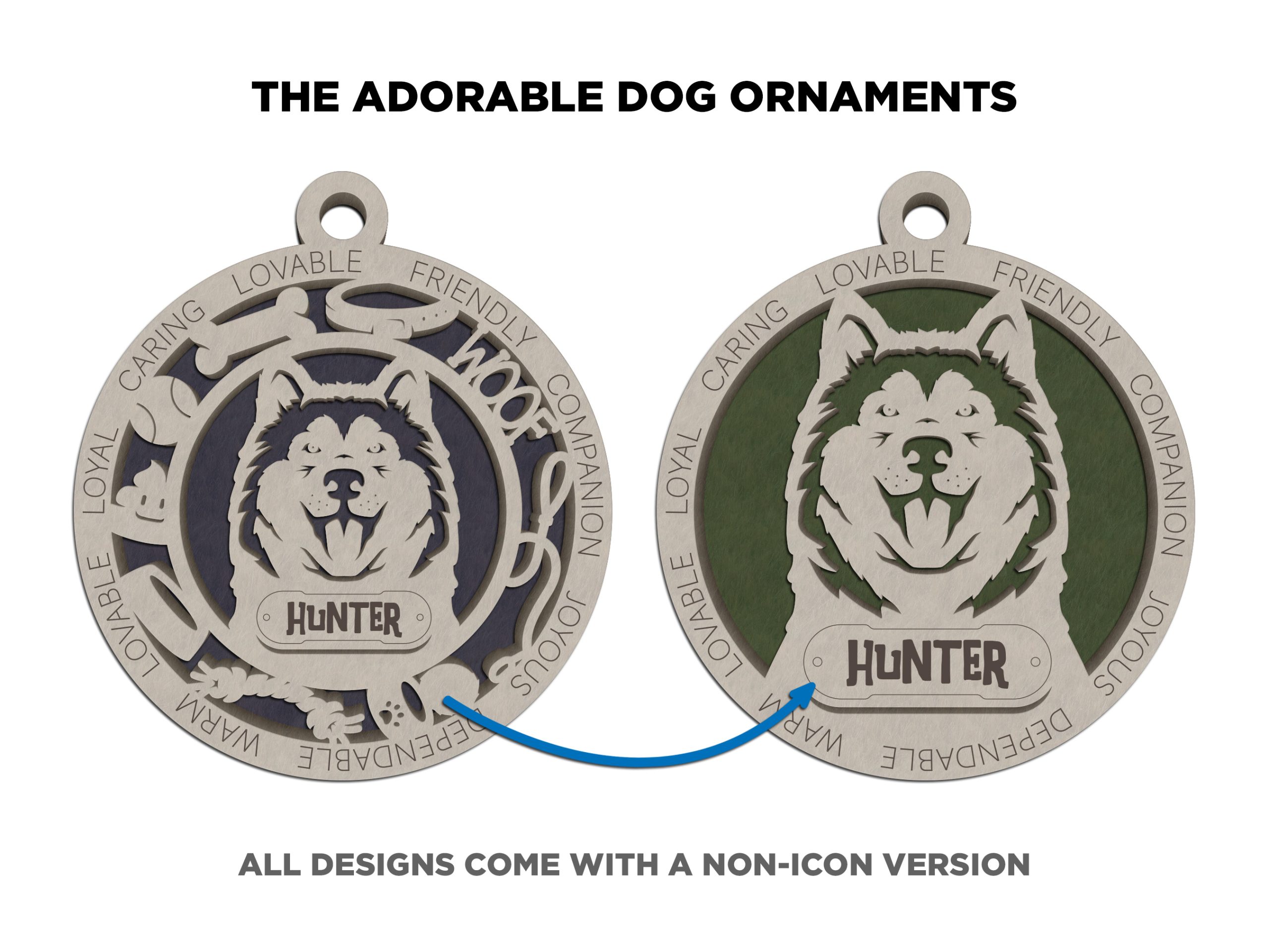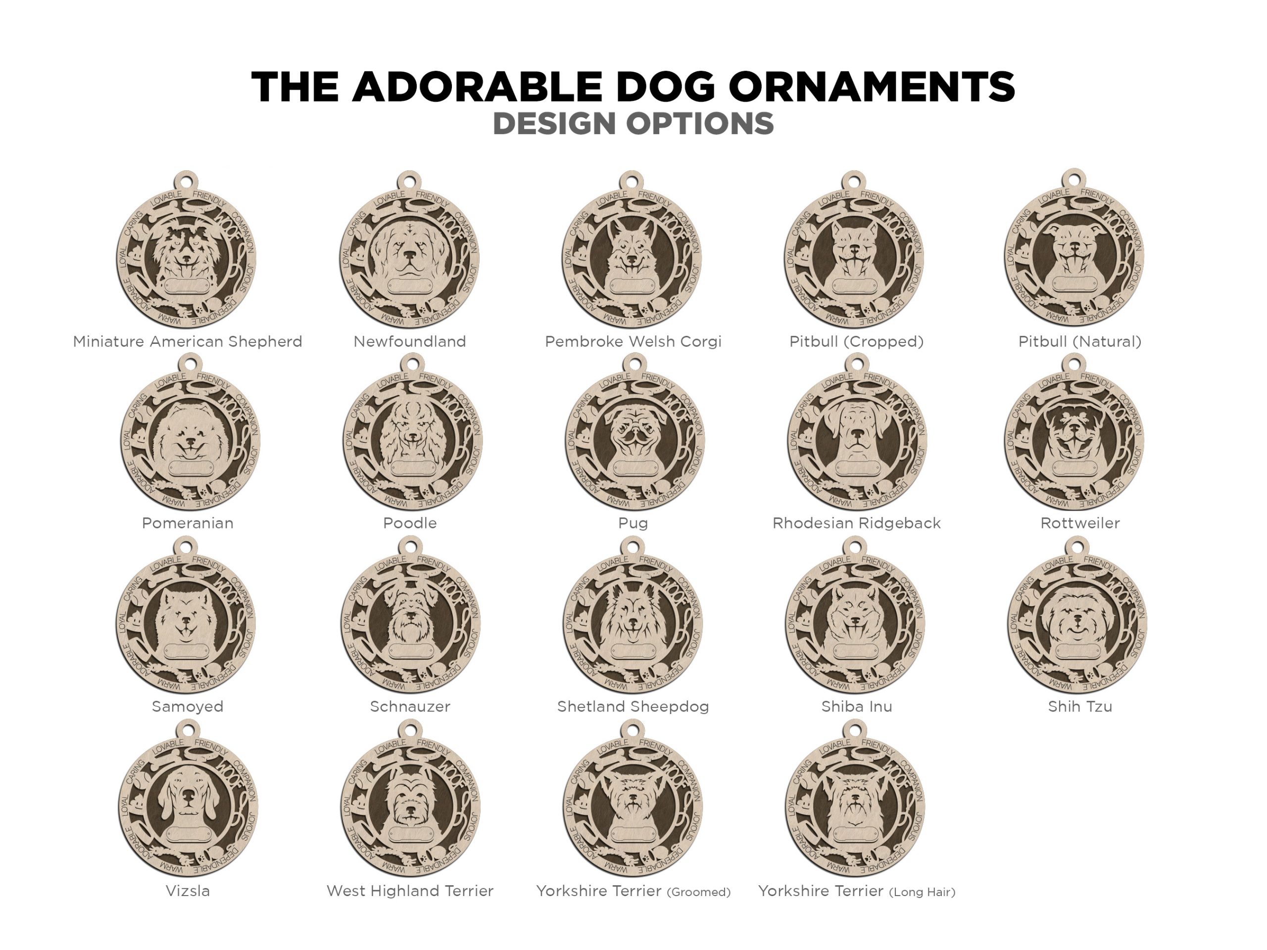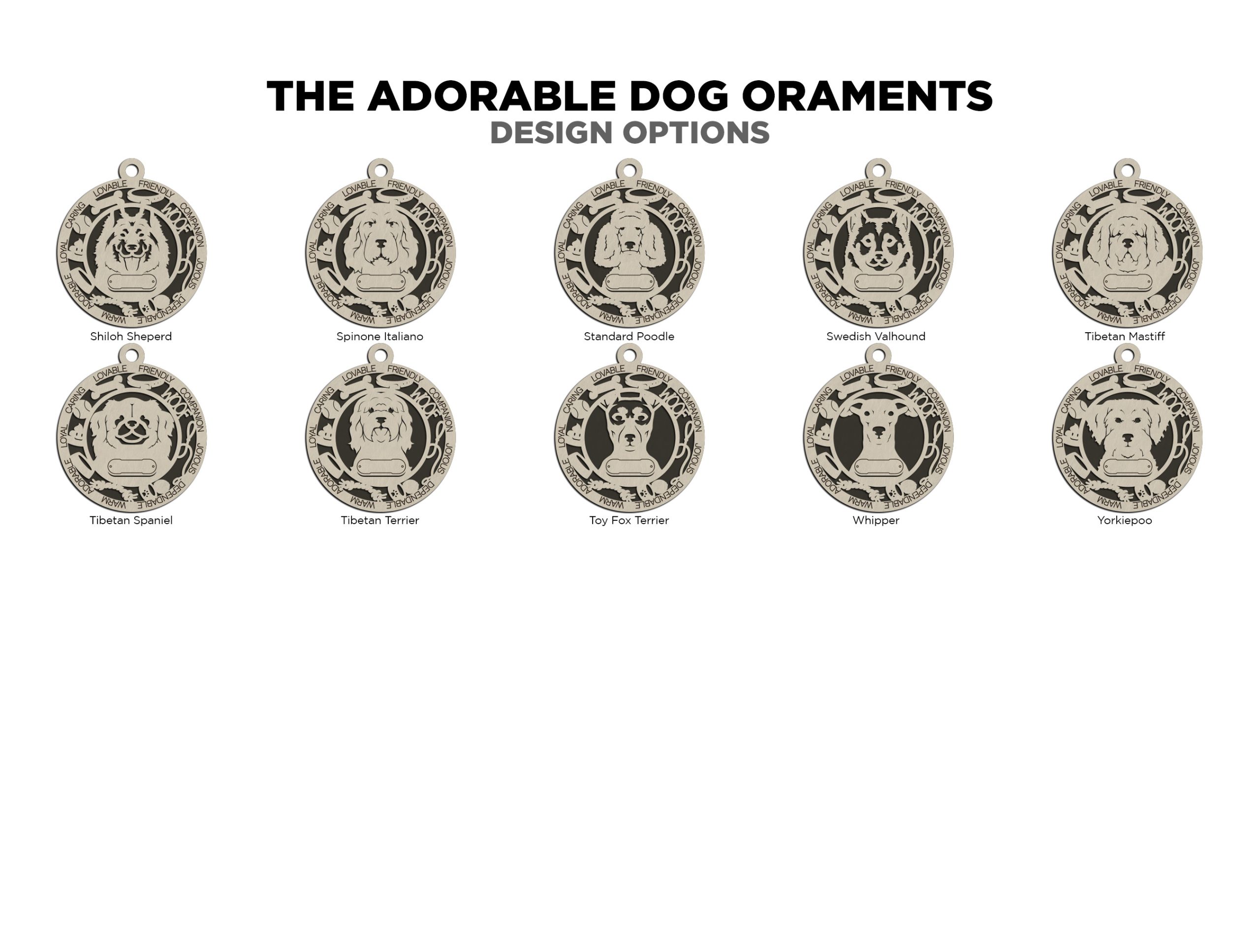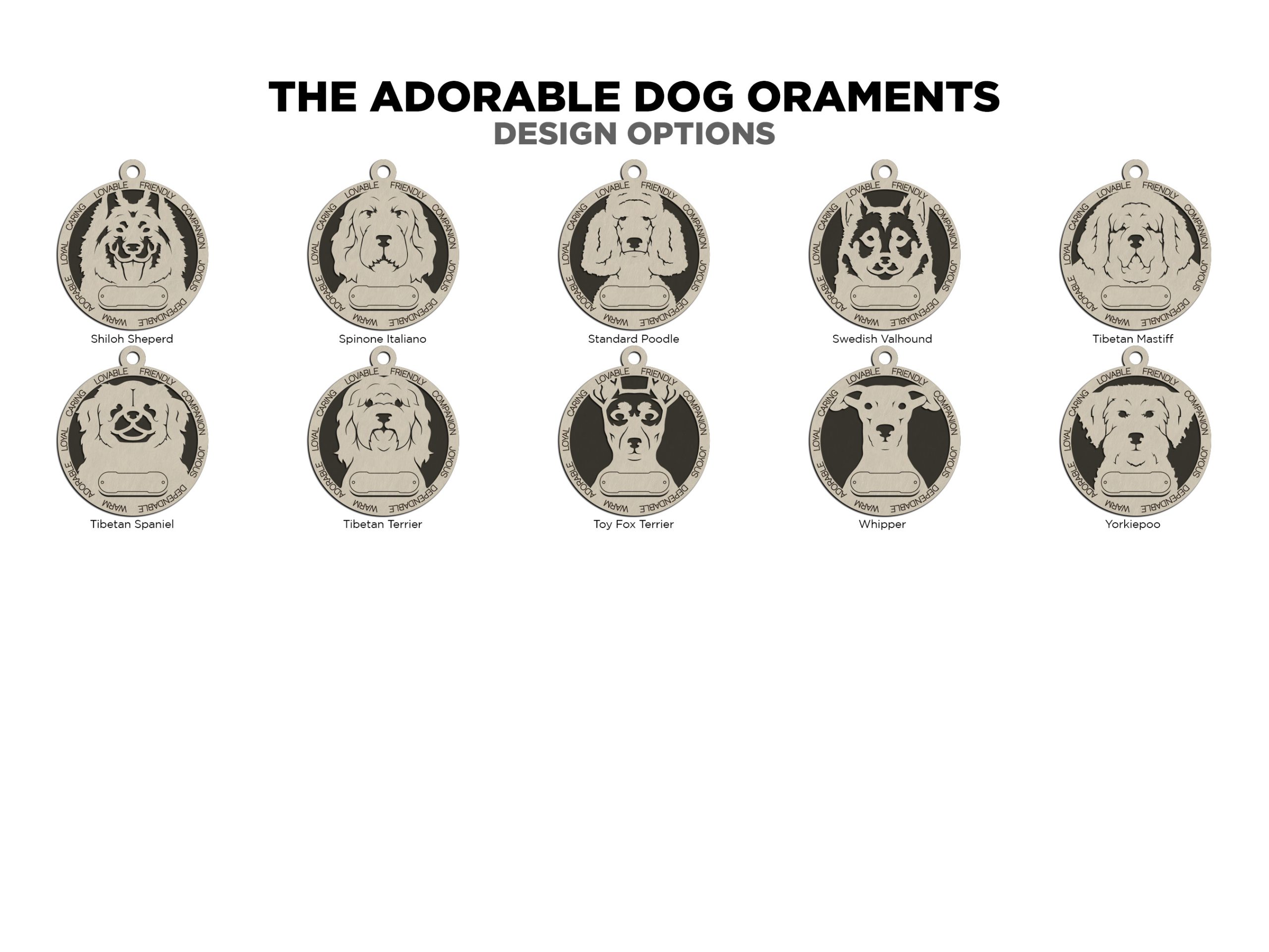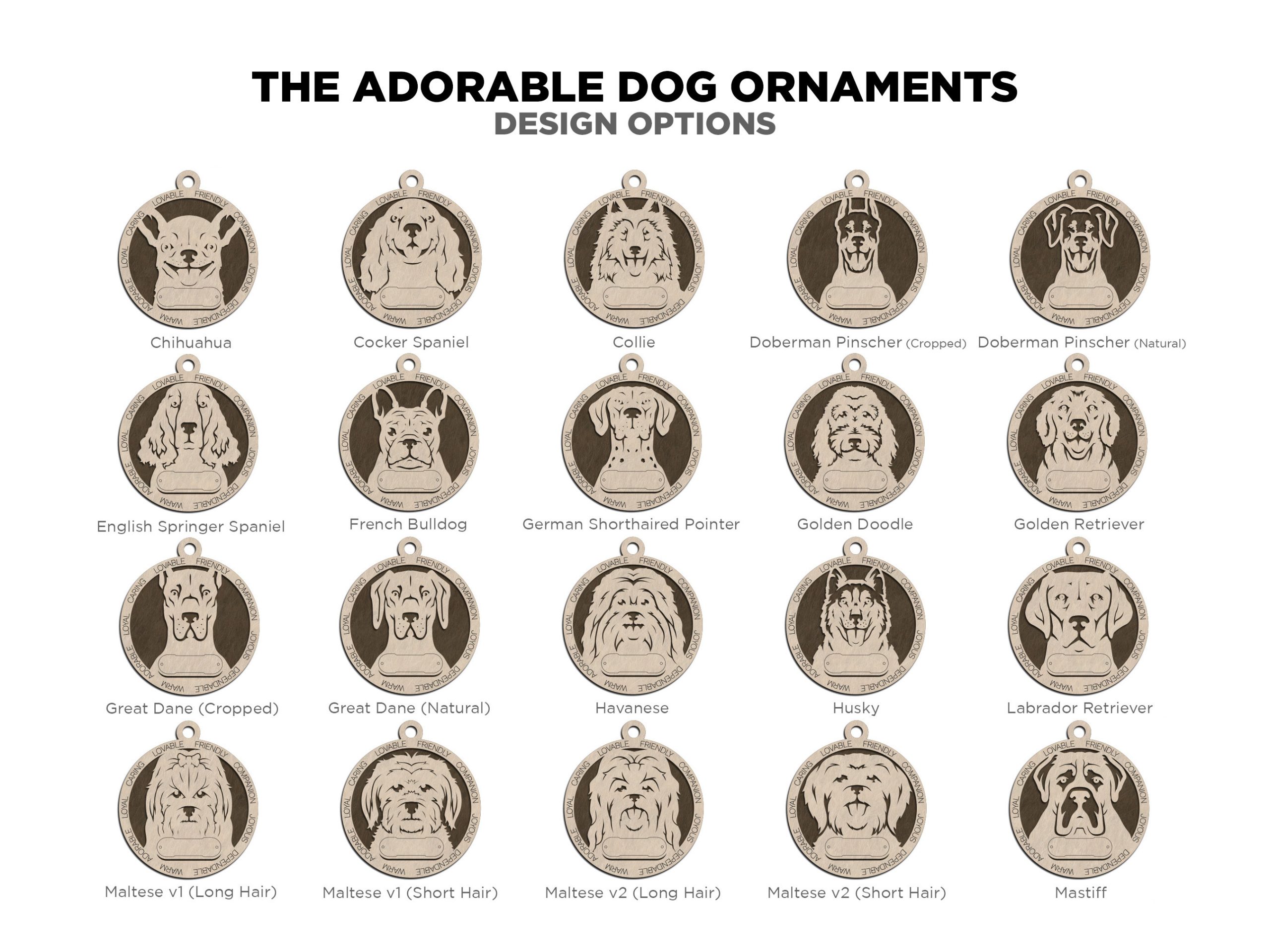 Celebrate your furry friend with our personalized laser-engraved Adorable Dog Ornaments, featuring a variety of breeds. Each ornament can be customized with your pet’s name, making it a perfect keepsake for the holidays.
