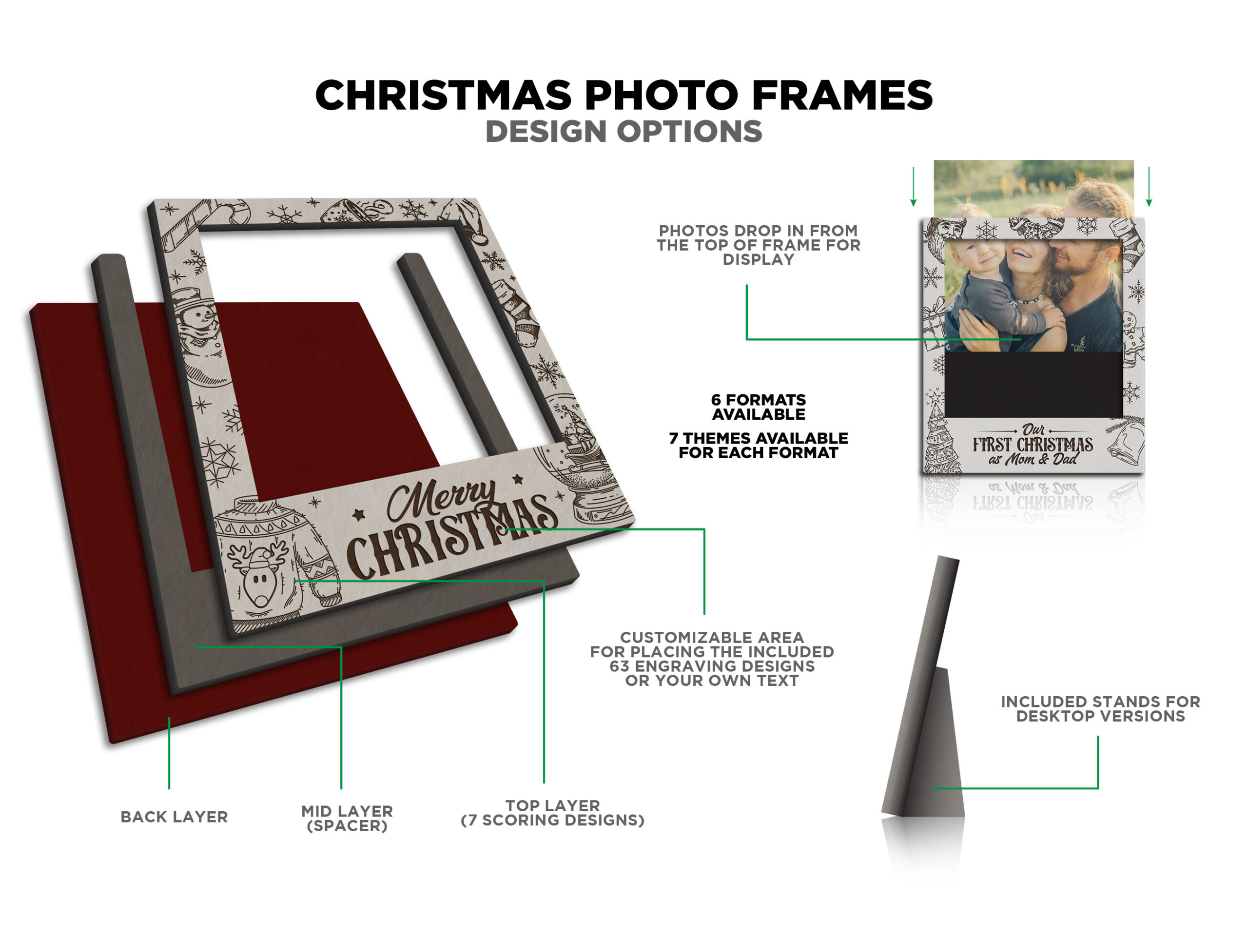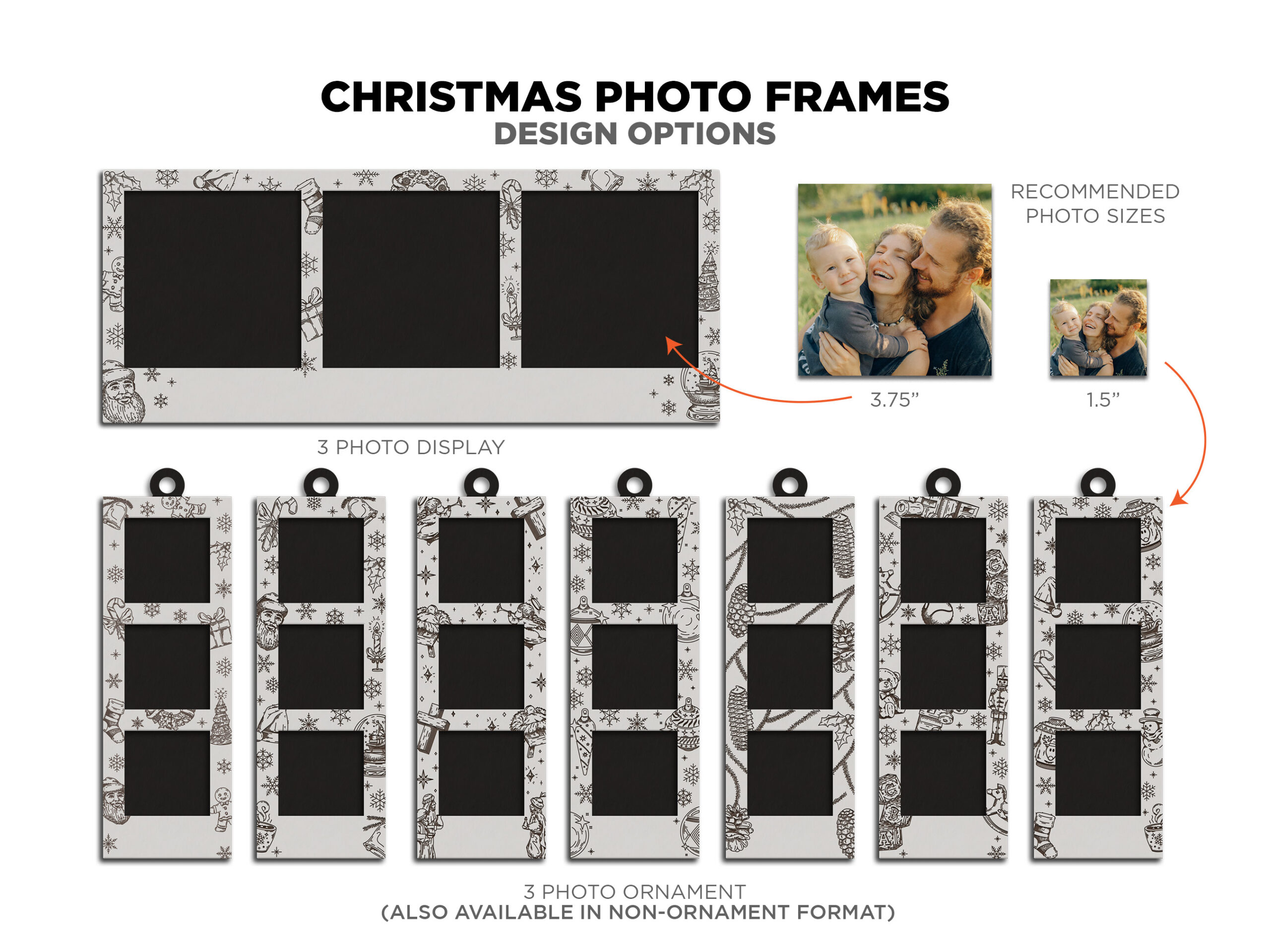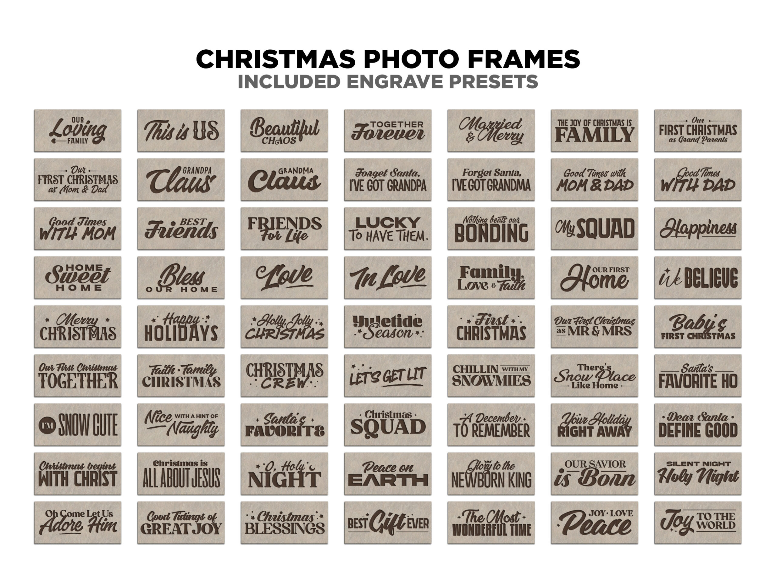 Christmas Photo Frames (Engraved preset option is in the same order as pictured). Customization Guidelines under Quick Links at bottom of webpage.