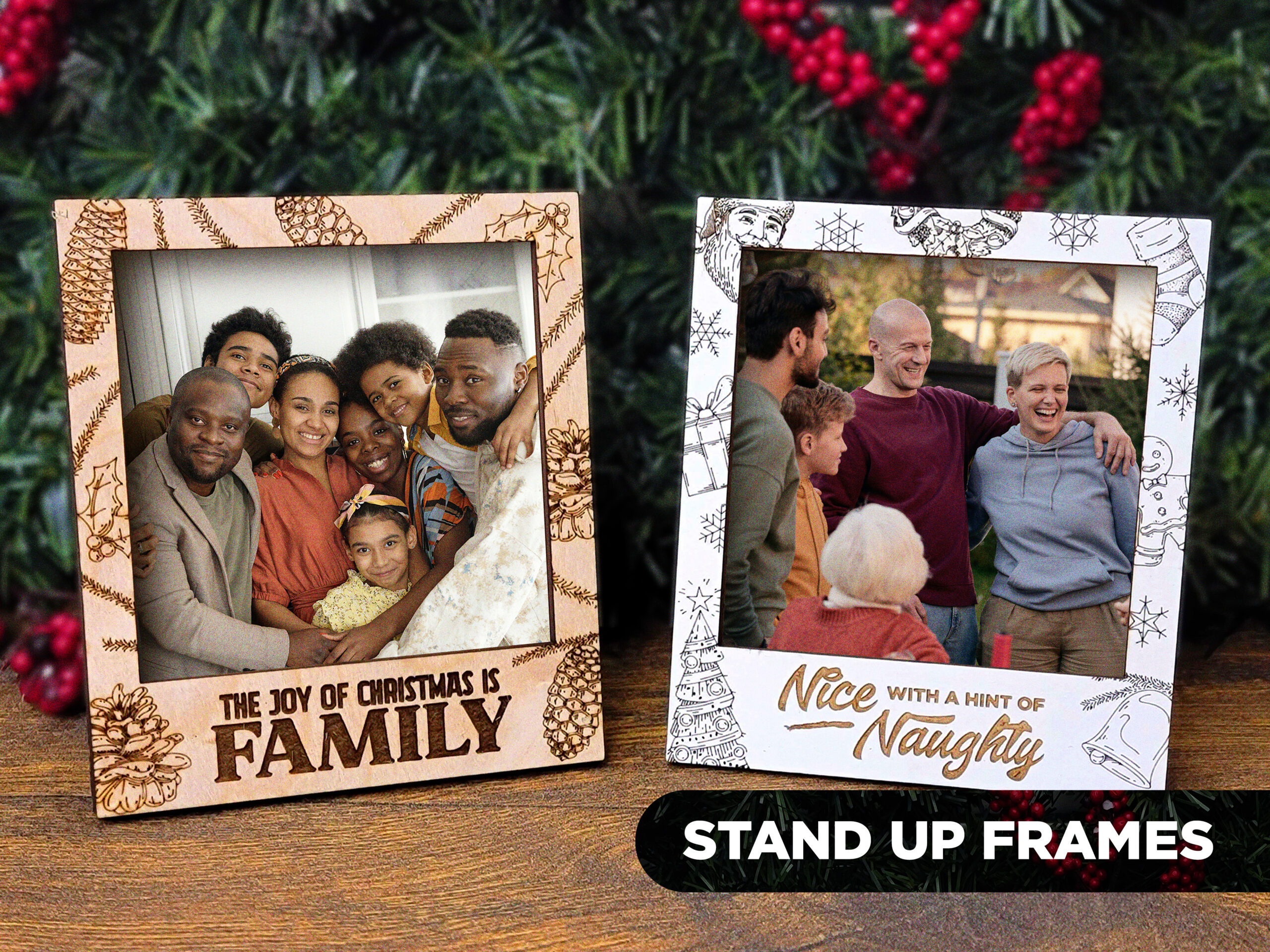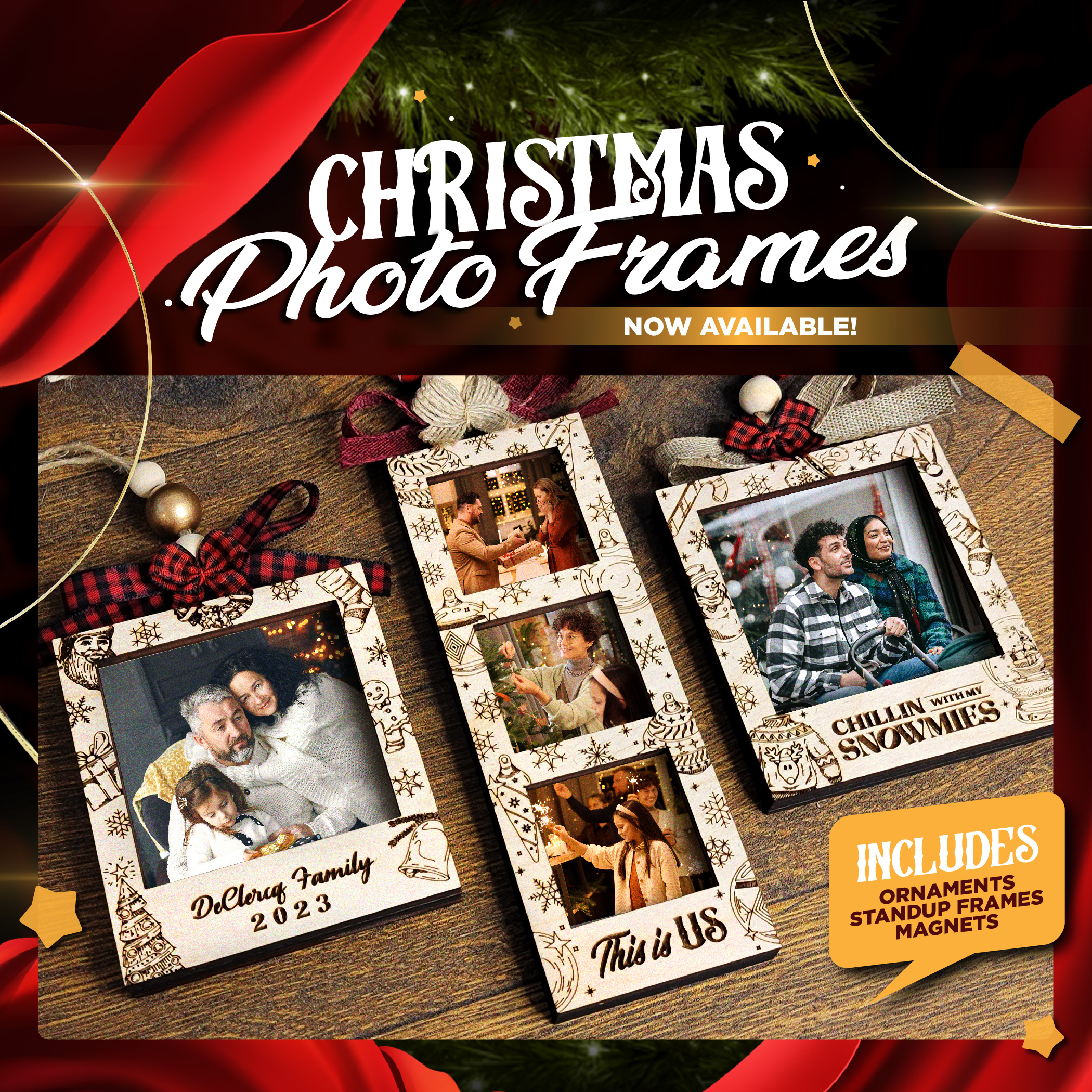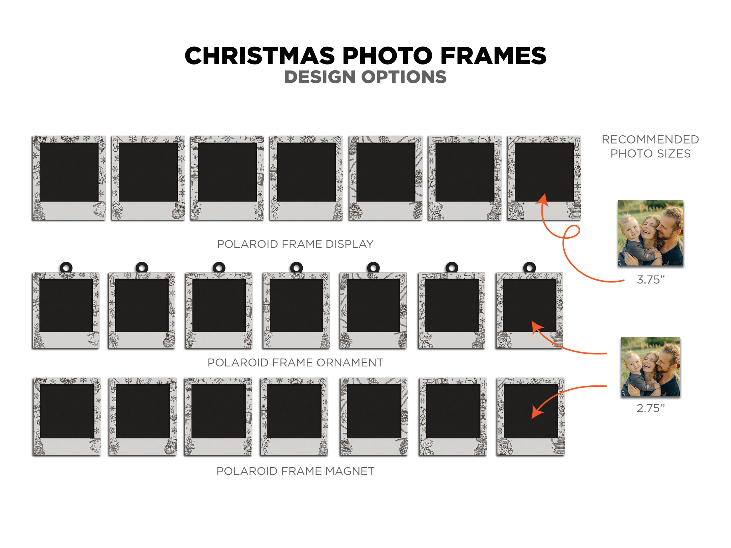 Christmas Photo Frames (Engraved preset option is in the same order as pictured). Customization Guidelines under Quick Links at bottom of webpage.