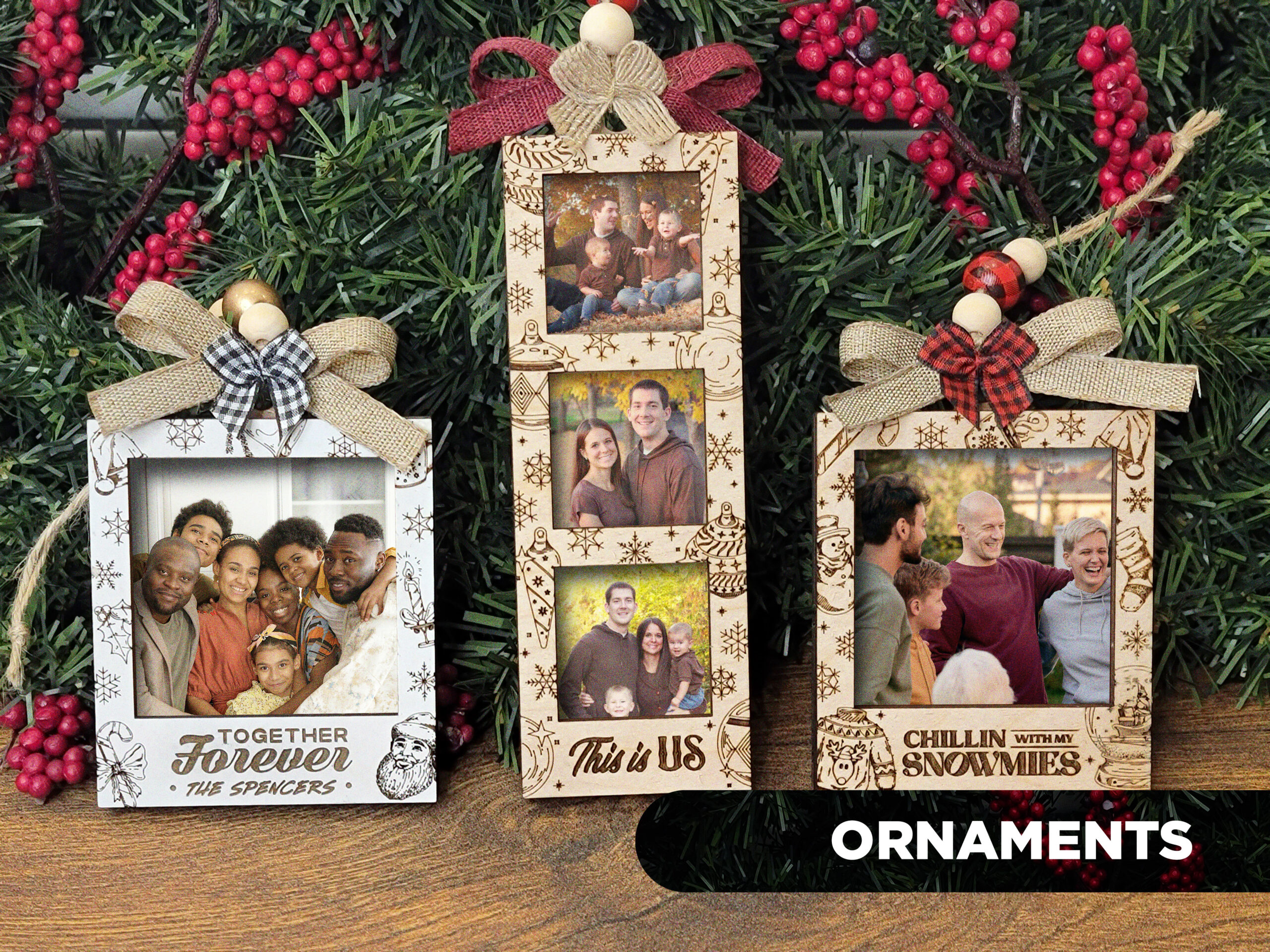 If you choose our ornament version, you’ll receive a delightful package complete with a random color/pattern bow, three wooden beads, and twine to hang the ornament. This adds a charming touch to your holiday decorations or makes for a thoughtful gift. Explore our collection today and find the perfect frame to showcase your cherished memories.