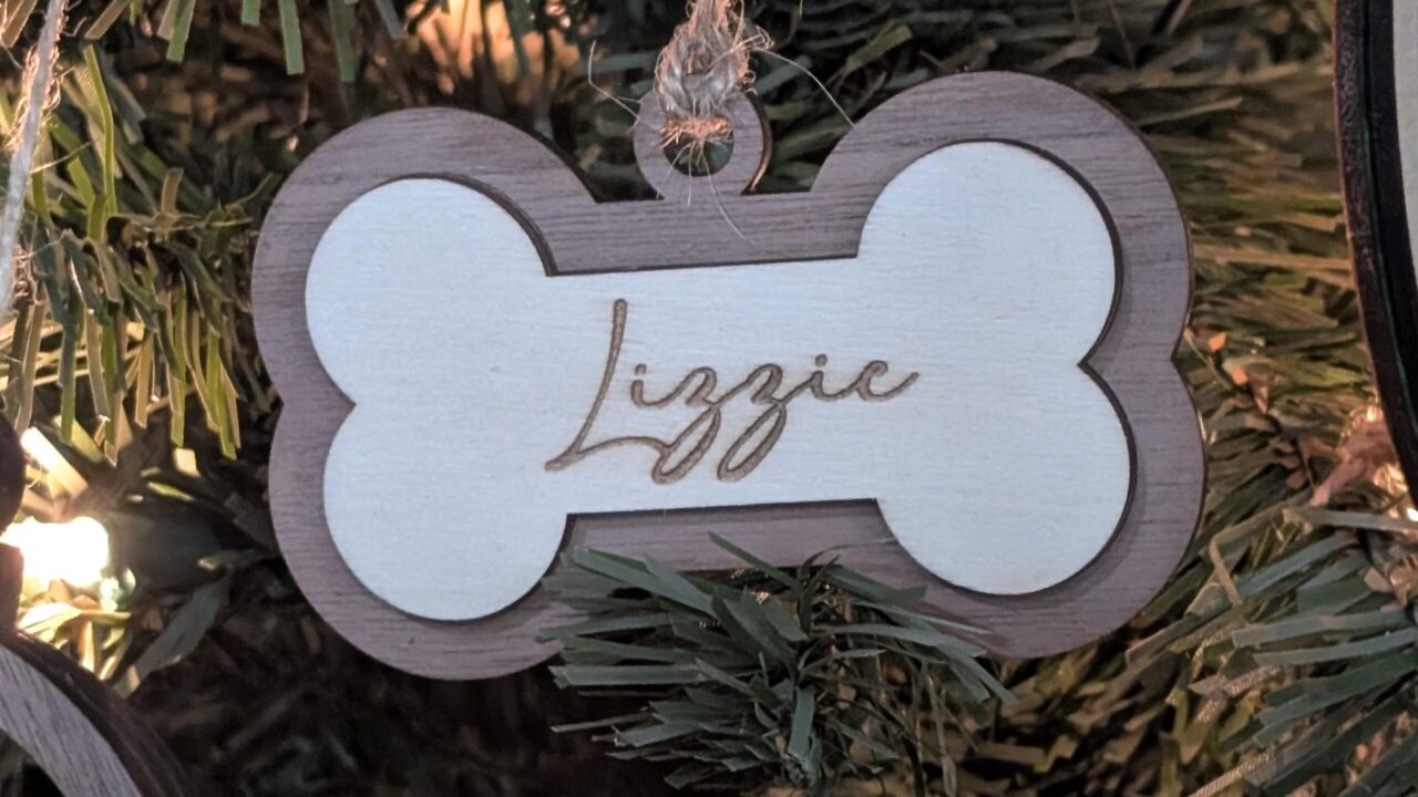 Add a personal, playful touch to your holiday tree with our custom Dog Bone Ornament, specially crafted for pet lovers! This 3″ x 1.6″ ornament is laser-cut and engraved on premium Baltic birch plywood with a contrasting walnut plywood backing, adding a warm and rustic charm. Customize with your pet’s name and choose an optional background color to make it uniquely yours. Celebrate the season with a little extra love for your furry friend, perfect as a keepsake or gift for fellow dog enthusiasts!