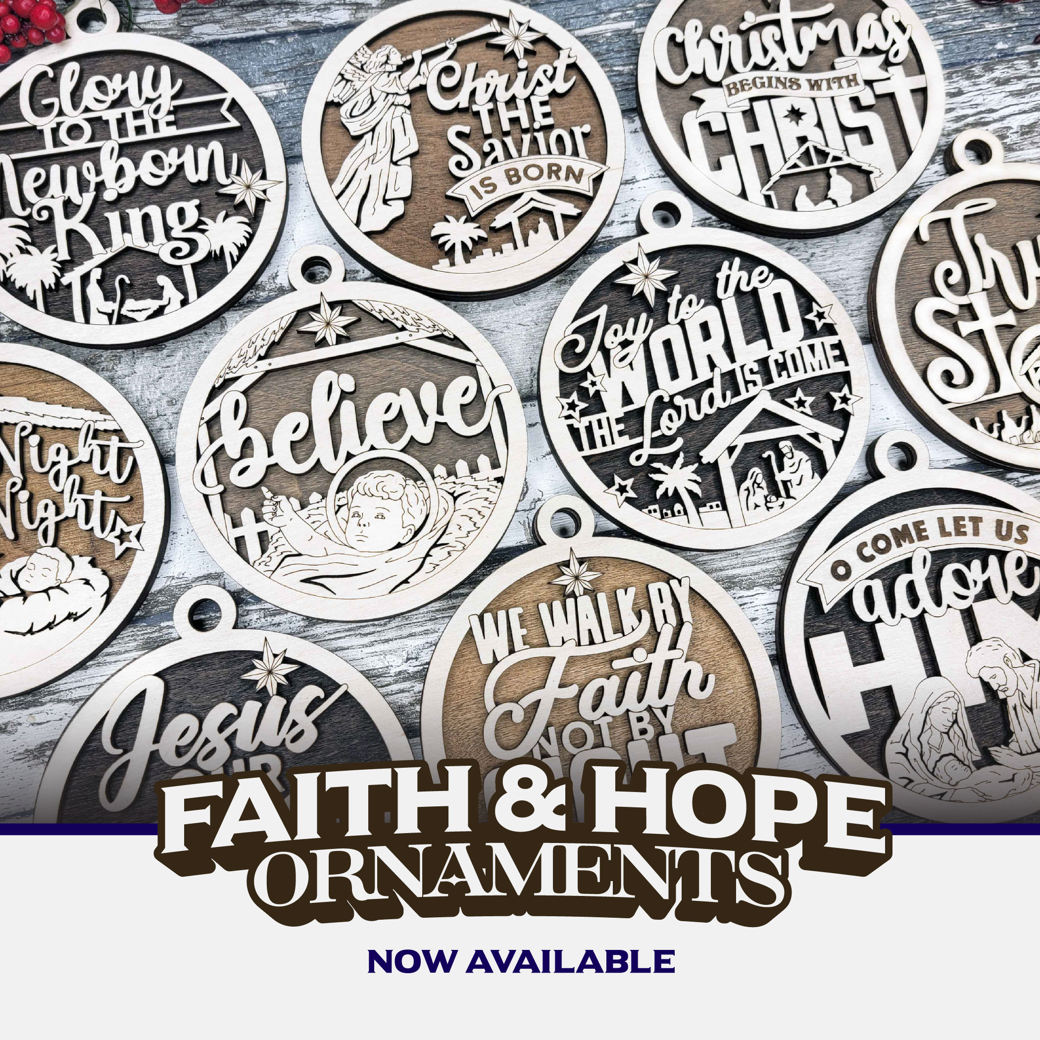 Embrace the spirit of the season with our Faith & Hope Ornaments collection, designed to reflect the true meaning of Christmas. Featuring heartfelt phrases like “Jesus Our Savior is Born” and “Silent Night, Holy Night,” these ornaments bring a touch of devotion and hope to your holiday décor or make a thoughtful, inspiring gift.