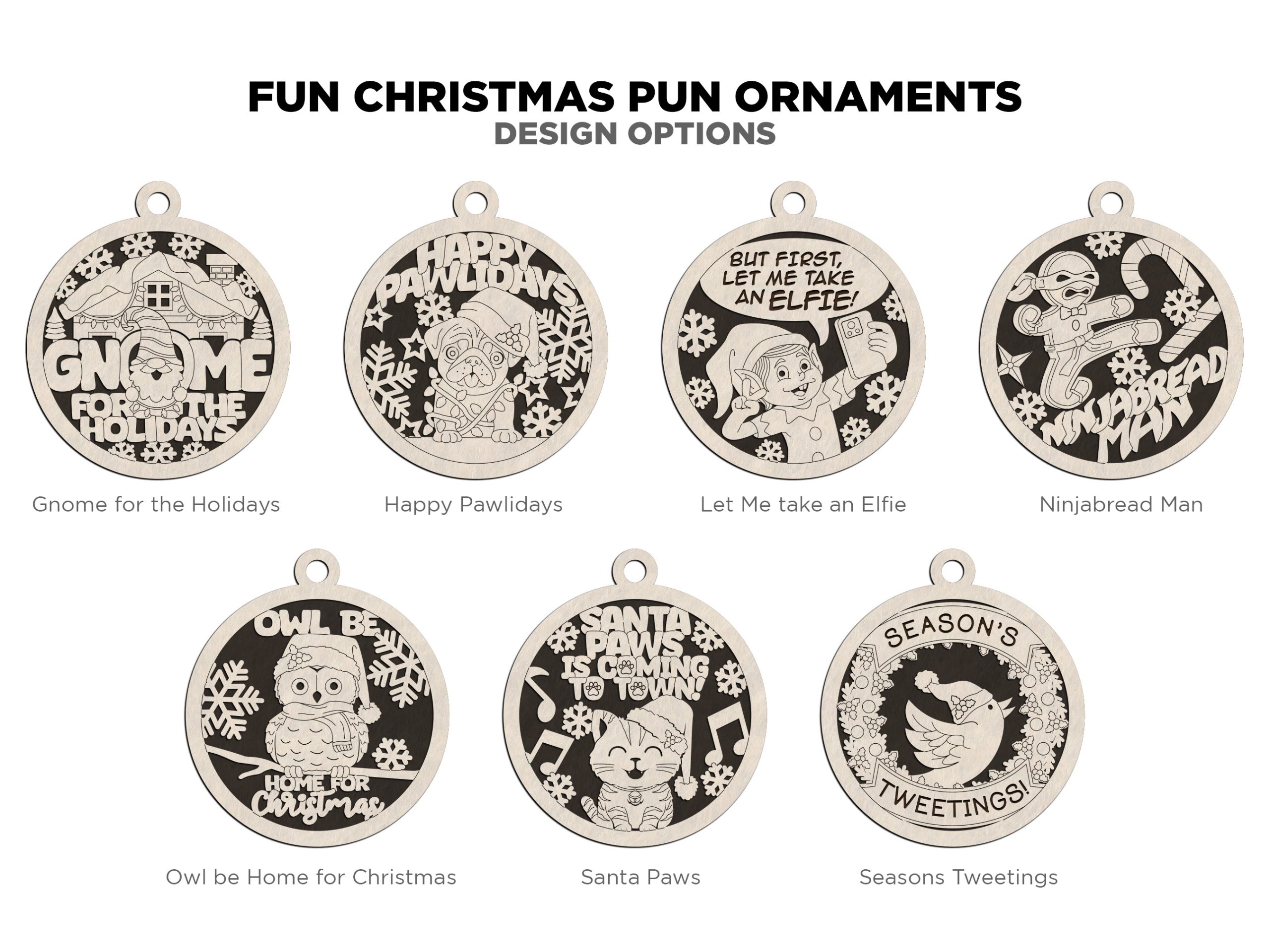 Discover our Fun Christmas Pun Ornaments, choose from 14 delightful puns related to